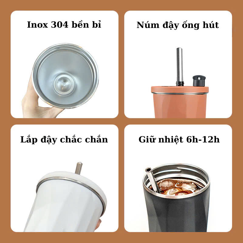Thông số kỹ thuật Ly Giữ Nhiệt Phong Cách Trẻ Trung, Chất Liệu Inox304, Giữ Nóng Lạnh, Kèm Ống Hút , Có Nắp Đậy Và Ron Cao Su Chống Tràn , Chống Đổ - Hàng chính hãng