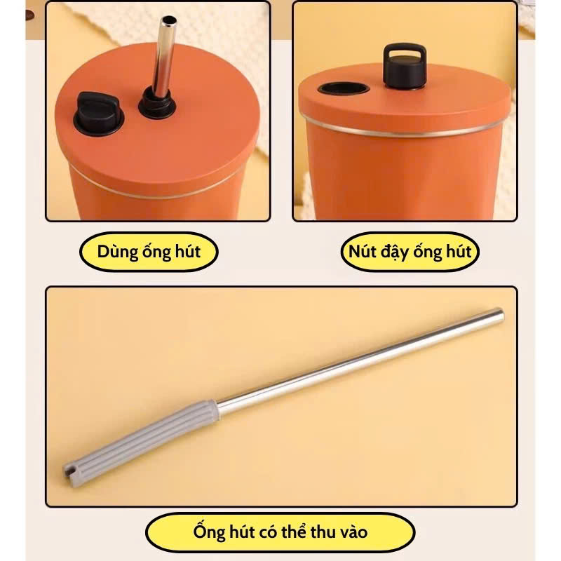 – Ống hút có phần silicon chịu nhiệt để ống hút thụt ra thụt vào được