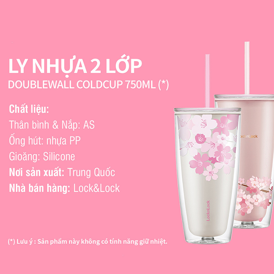 Thông số kỹ thuật Ly Nhựa 2 Lớp LocknLock Double Wall Cold Cup Cherry Blossom 750ml HAP509