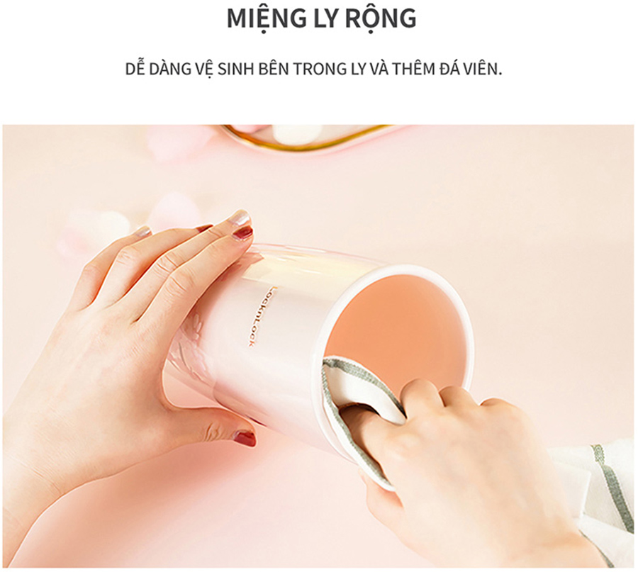 - Miệng ly rộng: Dễ dàng vệ sinh bên trong ly và thêm đá viên.