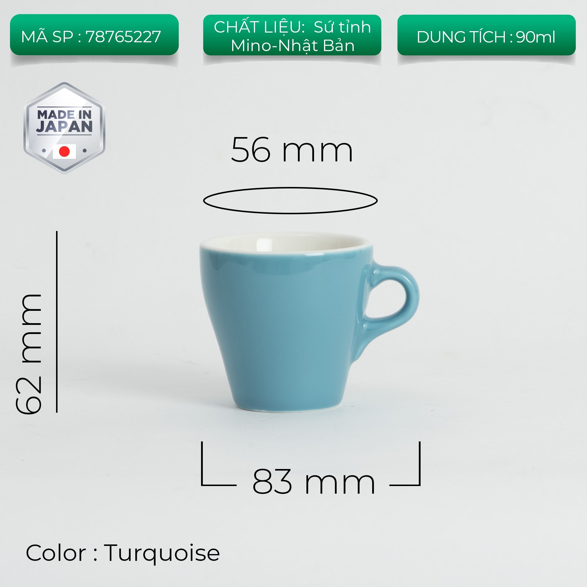 Kích thước: Cao: 62mm; Ngang: 83mm; Miệng: 65mm
