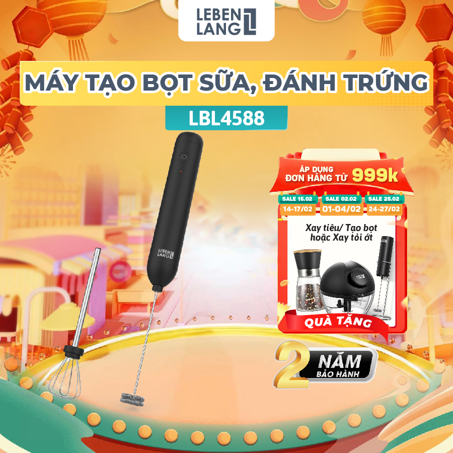 Máy đánh trứng đánh bọt cafe cầm tay mini Lebenlang LBL4588, 2 tốc độ, sạc pin usb tiện dụng - hàng chính hãng