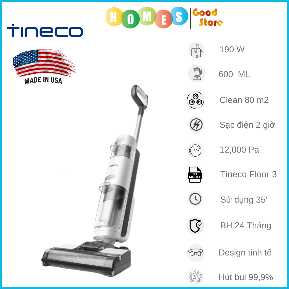 Thông số kỹ thuật Máy Hút Bụi Lau Sàn Khô Uớt Tineco S5 Combo Tự Giặt Giẻ Diệt Khuẩn Lực Hút 12.000 Pa - Hàng Chính Hãng