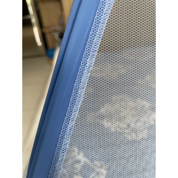 -Đáy màn may cẩn thận , chần kỹ , sắc cạnh , kết hợp 4 góc chun cài vào đệm và khung thép vững chắc , giúp bảo vệ em bé không bị lăn khỏi giường giúp mẹ yên tâm để bé nằm 1 mình .