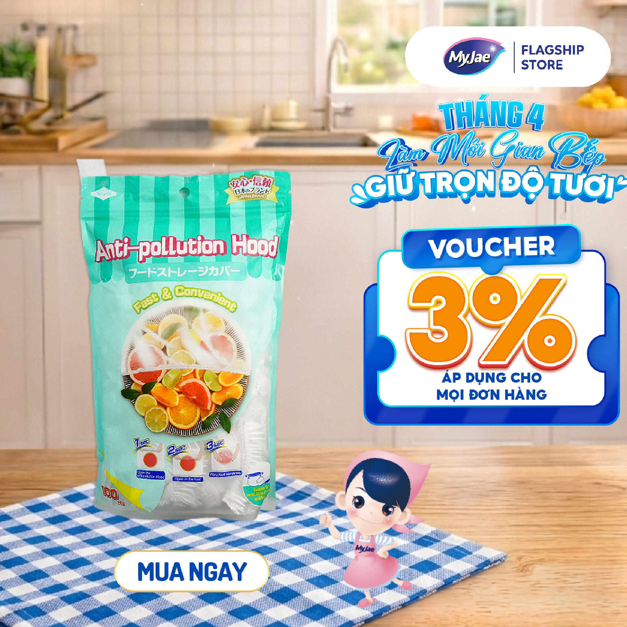 Thông số kỹ thuật Màng Bọc Thực Phẩm PE Tái Sử Dụng Dạng Bo Chun MyJae, Màng Bọc Bảo Quản Thức Ăn (100 Cái/Gói)
