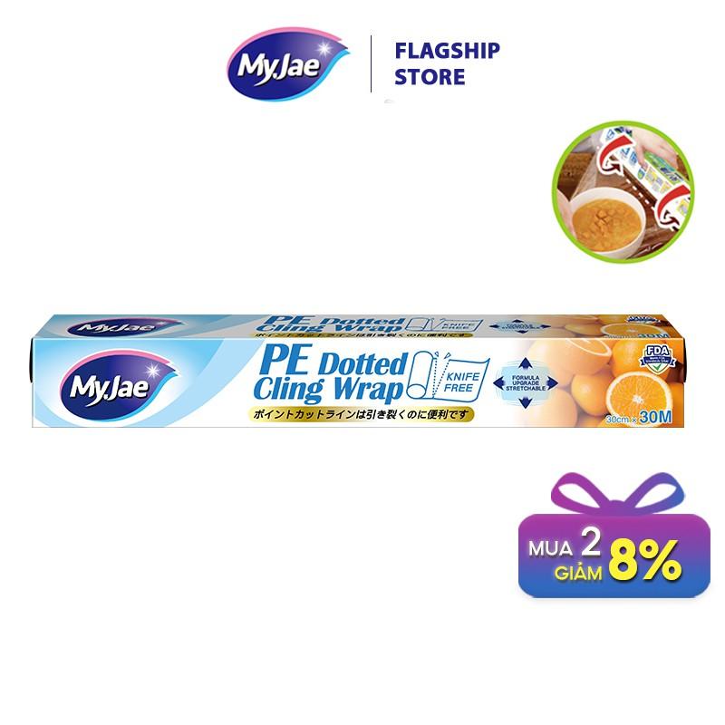 | Màng bọc thực phẩm PE MyJae Đài Loan 30cmx30m dạng xé chm đứt bảo quản thực phẩm an toàn tiện lợi |