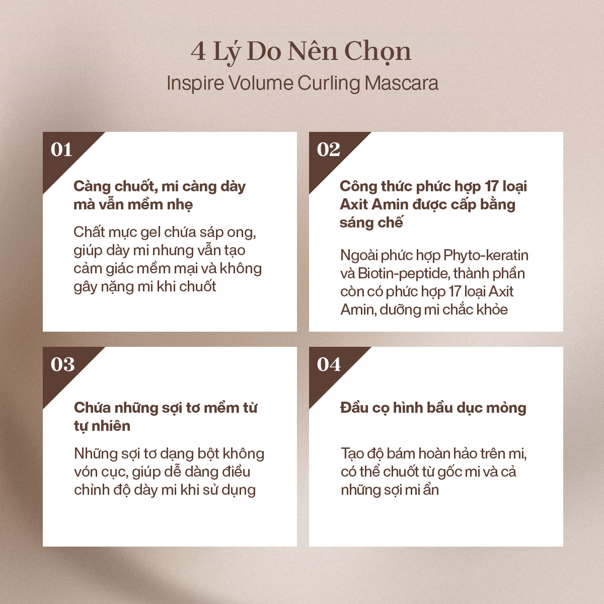 - Công thức chuyên biệt giúp làm dày mi tối đa và định hình mi cong hoàn hảo