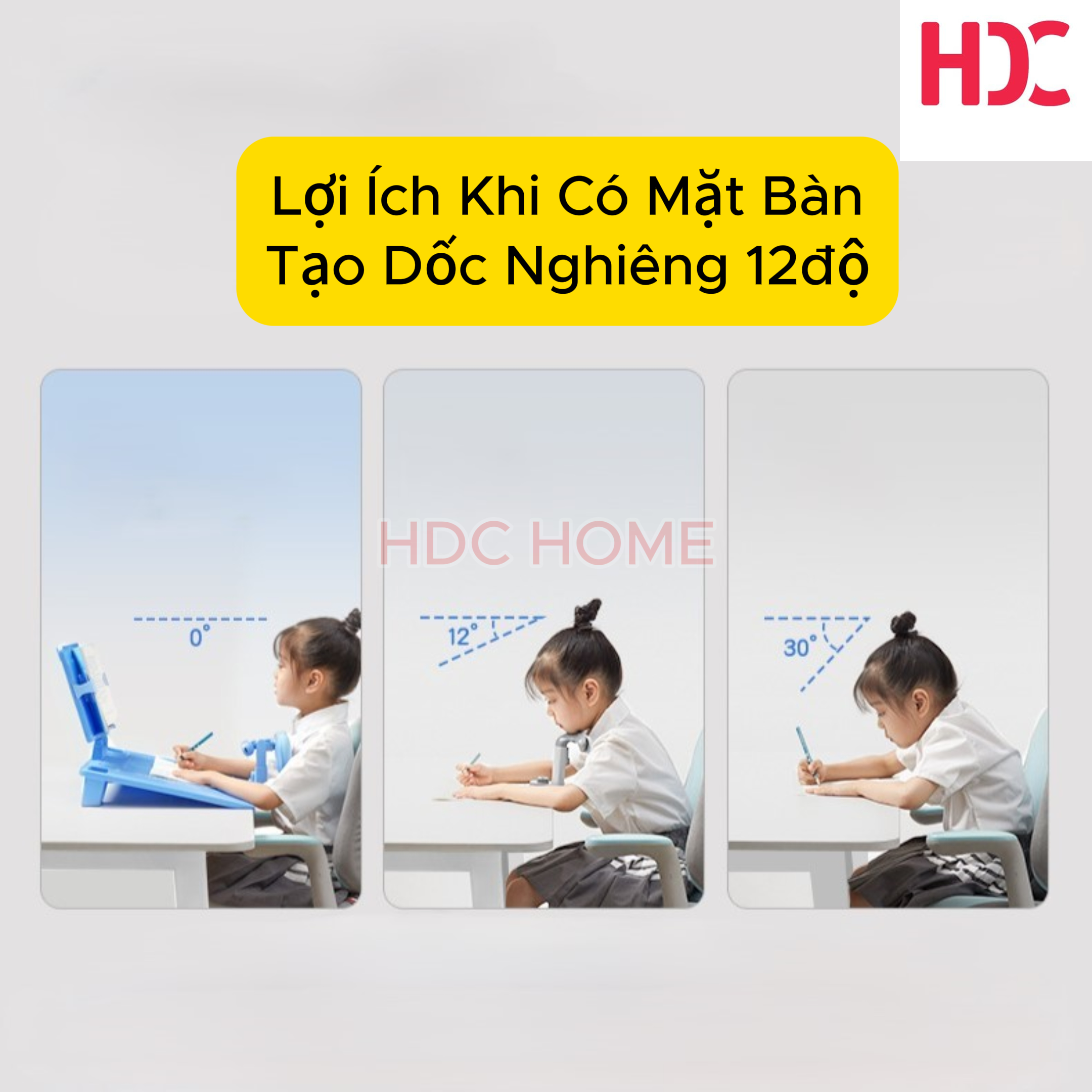 - Thiết kế mặt bàn nghiêng 12° giúp trẻ có tầm nhìn chuẩn mà không phải cúi đầu quá nhiều