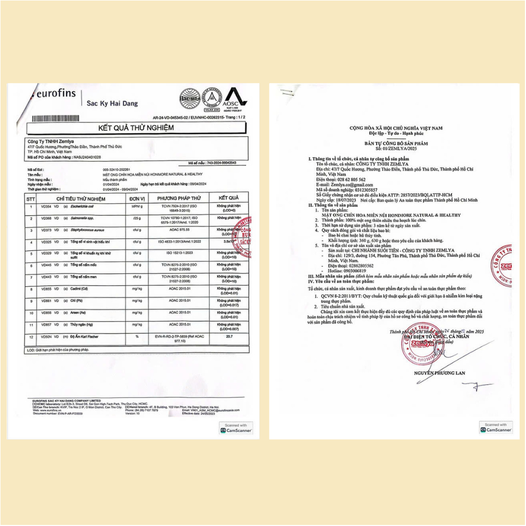 - Giấy kiểm nghiệm số AR-23-VD-042970-01 được cấp bởi Eurofins