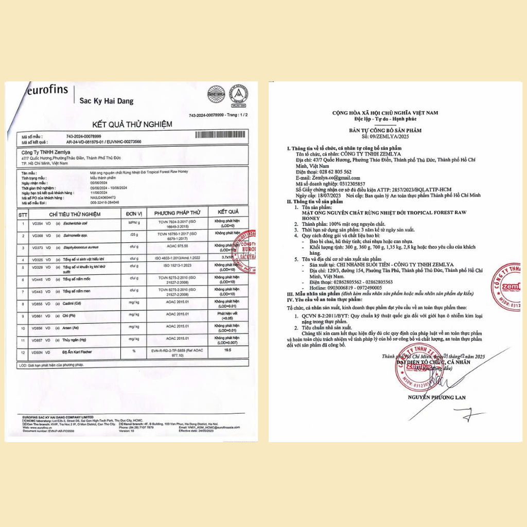- Số kiểm nghiệm: 230109033 được cấp bởi Trung tâm phân tích Công nghệ cao Hoàn Vũ