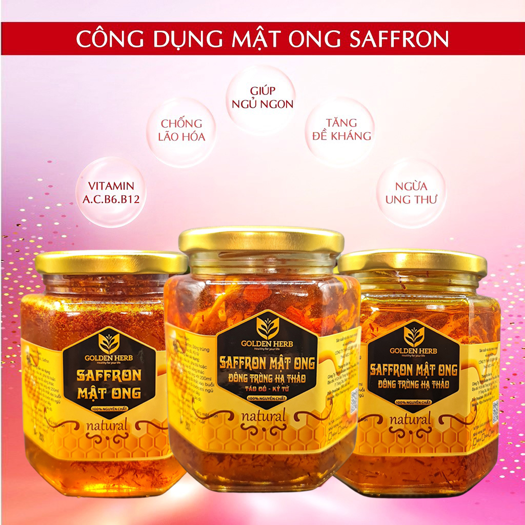 Thông số kỹ thuật Mật Ong Saffron Đông Trùng Hạ Thảo Táo đỏ Kỷ tử 380ml/lọ Golden Herb