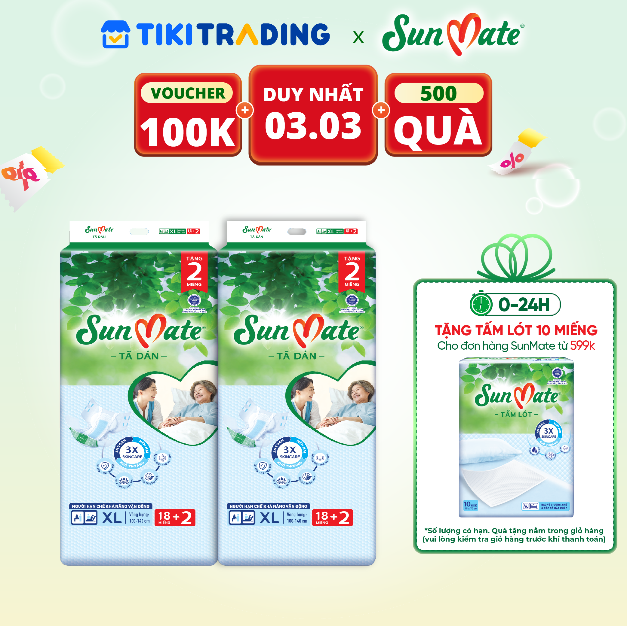Thông số kỹ thuật [Mẫu mới] Combo 2 Tã dán người lớn SunMate XA2 mới size XL-18+2 miếng