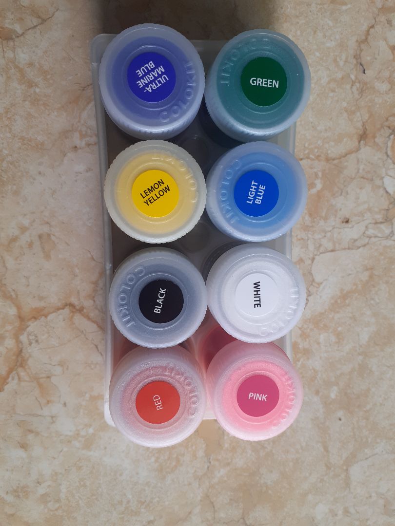 - Có roan cao su giúp kín hơi. 08 lọ màu được đựng trong vĩ bỏ trong hộp giấy