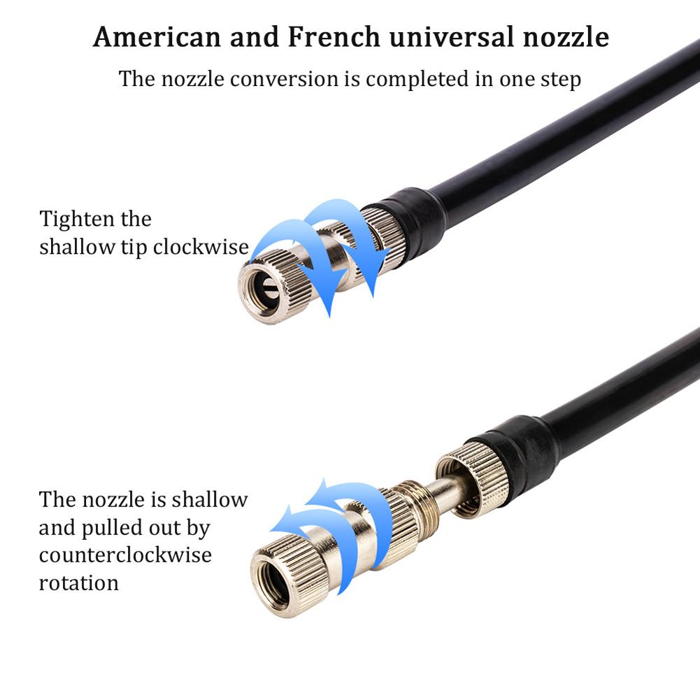 Schrader and Presta valve can be switched in one step to meet different needs. With hose bayonet, it is convenient to store.