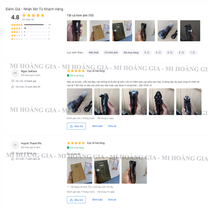 • Sản phẩm như quảng cáo, đóng gói cẩn thận, sản phẩm chất lượng, sản phẩm đẹp, sản phẩm sài tốt, cạo sạch râu, pin sài lâu, nhân viên giao hành thân thiện, vui vẻ, giao hành nhanh, giá cũng hợp lý