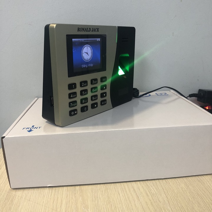 - Máy chấm công Ronald Jack RJ2000 bảo mật cao, người khác không chấm công giùm được là sản phẩm phù hợp với các công ty có quy mô vừa và nhỏ, dung lượng của sản phẩm này tương đối khiêm tốn, quản lý 2000 dấu vân tay, bộ nhớ 80.000 lần giao dịch.