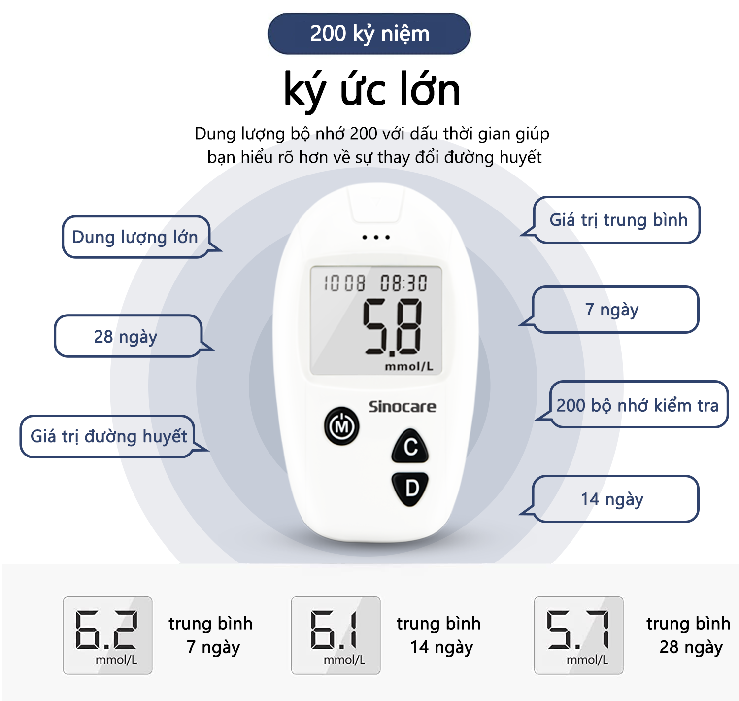 - Dải đo: 20 ~ 630mg/dL