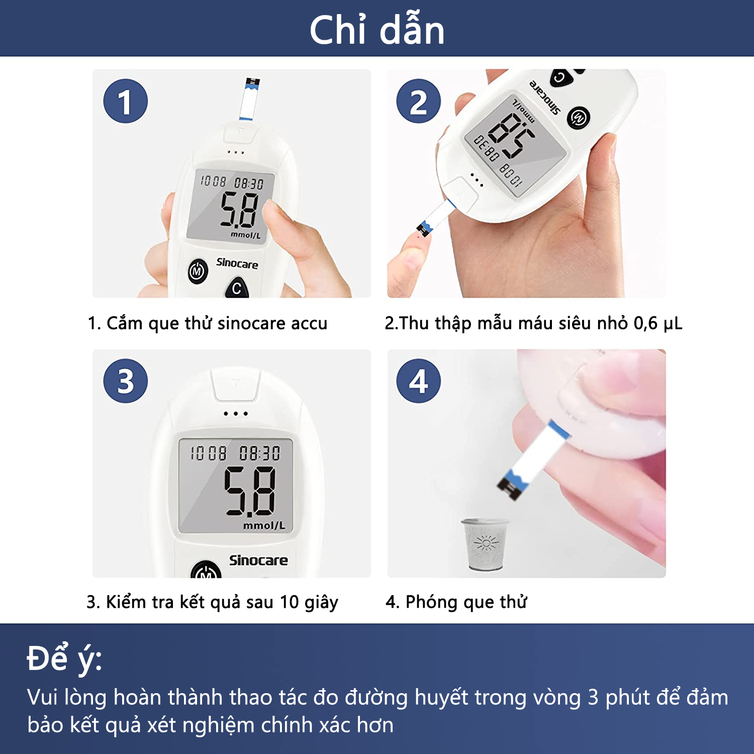 Mua cho ba mẹ dùng, cách sử dụng cũng khá dễ. Người lớn tuổi hay bị đường cao nên mình nghĩ nhà nào có ng lớn cũng cần 1 bộ. Chỉ thắc mắc là tại sao lại có hạn sử dụng nhỉ. Nó là máy đo thì chỉ k sử dụng nữa nếu nó hư thôi chứ.