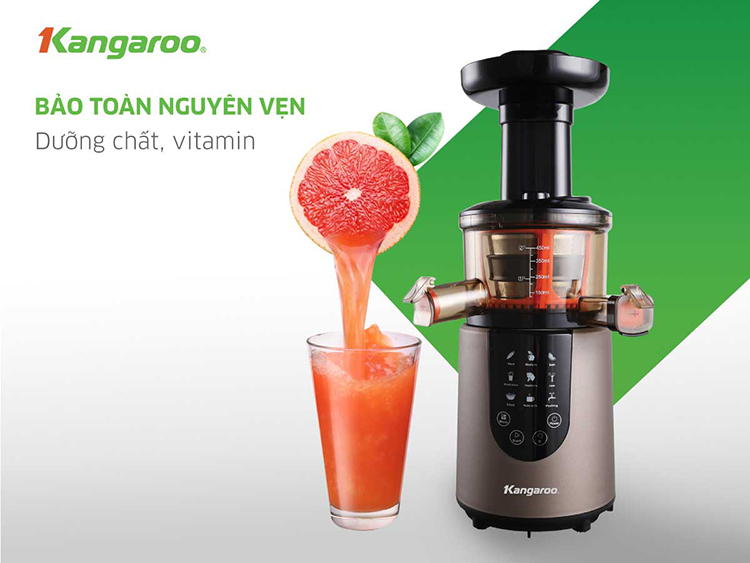 Máy ép chậm Kangaroo KG180SJD áp dụng công nghệ ép chậm thông minh, không bào mòn rau củ quả, bảo toàn 100% dưỡng chất tự nhiên. Tốc độ ép chỉ 60 vòng/phút giảm ma sát nhiệt, ép kiệt bã mang đến ly nước ép tươi ngon. Công nghệ ép ly tâm trong máy thông thường có tốc độ ép cao làm phát sinh nhiệt, phá vỡ cấu trúc vitamin và dưỡng chất có trong hoa quả. Với công nghệ ép chậm trong máy ép Kangaroo làm giảm ma sát, không phát sinh nhiệt, bảo toàn tối đa dưỡng chất và vitamin.