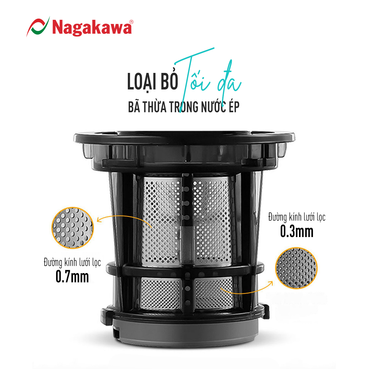 Thông số kỹ thuật Máy ép chậm Nagakawa NAG0818 (200W) - Trục ép 6 phân đoạn kiệt bã - Ống tiếp thực phẩm lớn - Hàng chính hãng
