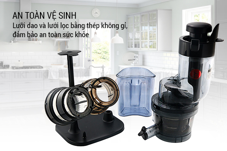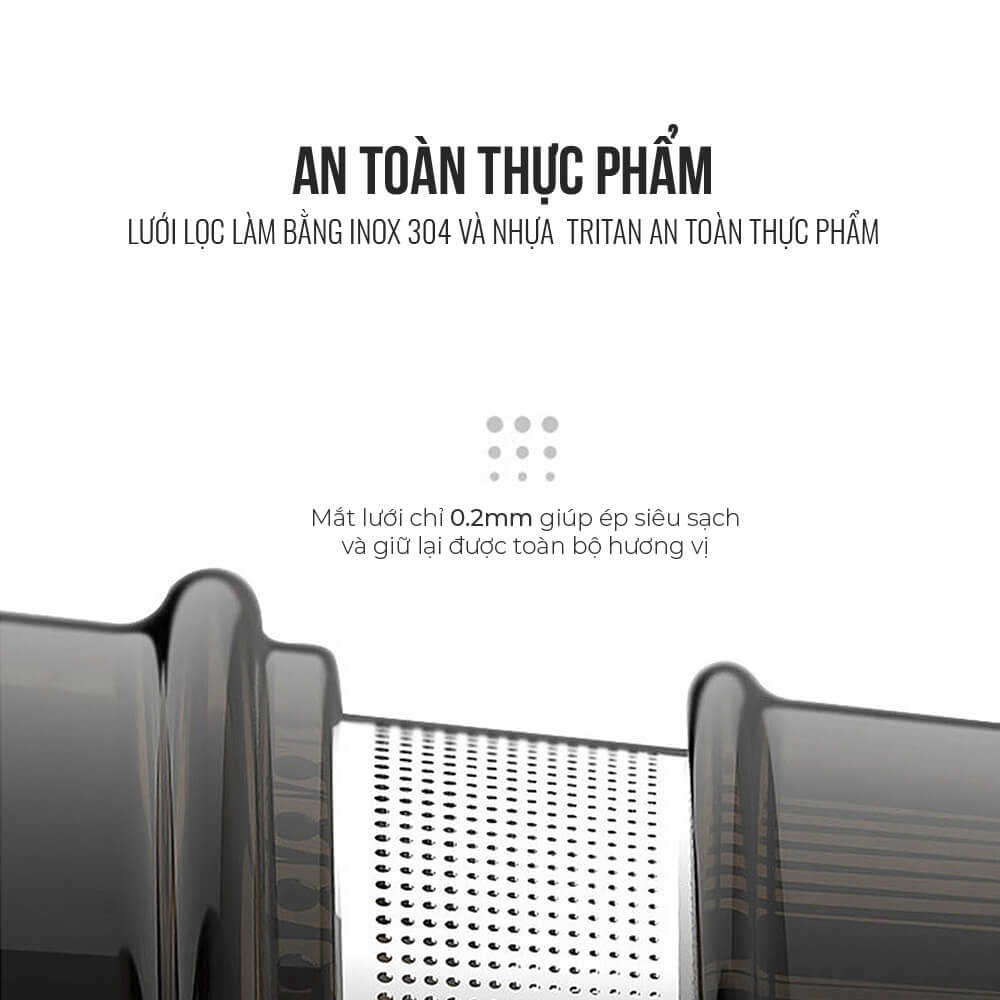 Lưỡi dao và lưới lọc bằng thép không gỉ, đảm bảo an toàn sức khỏe cho người sử dụng. Máy hỗ trợ các chức năng đảm bỏa an toàn cho người sử dụng và tăng tuổi thọ cho máy. Đồng thời, vòi dẫn nước ép chống nhỏ giọt sau khi xay xong giúp nước ép khi xay không bị tràn ra ngoài, giữ cho căn bếp của bạn luôn sạch sẽ.
