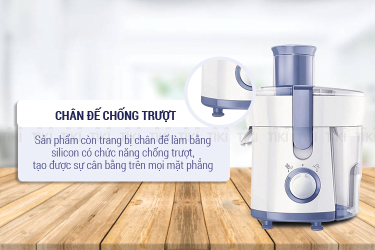Ngoài ra, sản phẩm còn trang bị chân đế làm bằng silicon có chức năng chống trượt, tạo được sự cân bằng trên mọi mặt phẳng giúp quá trình làm việc của máy được diễn ra liên tục và an toàn.