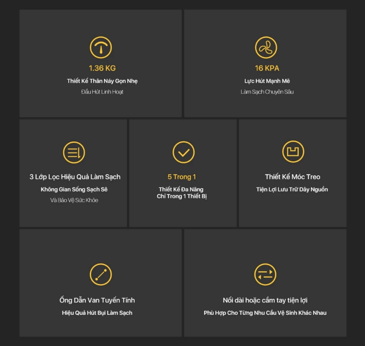 Động cơ không chổi than giúp máy bền bỉ và hút mạnh hơn.