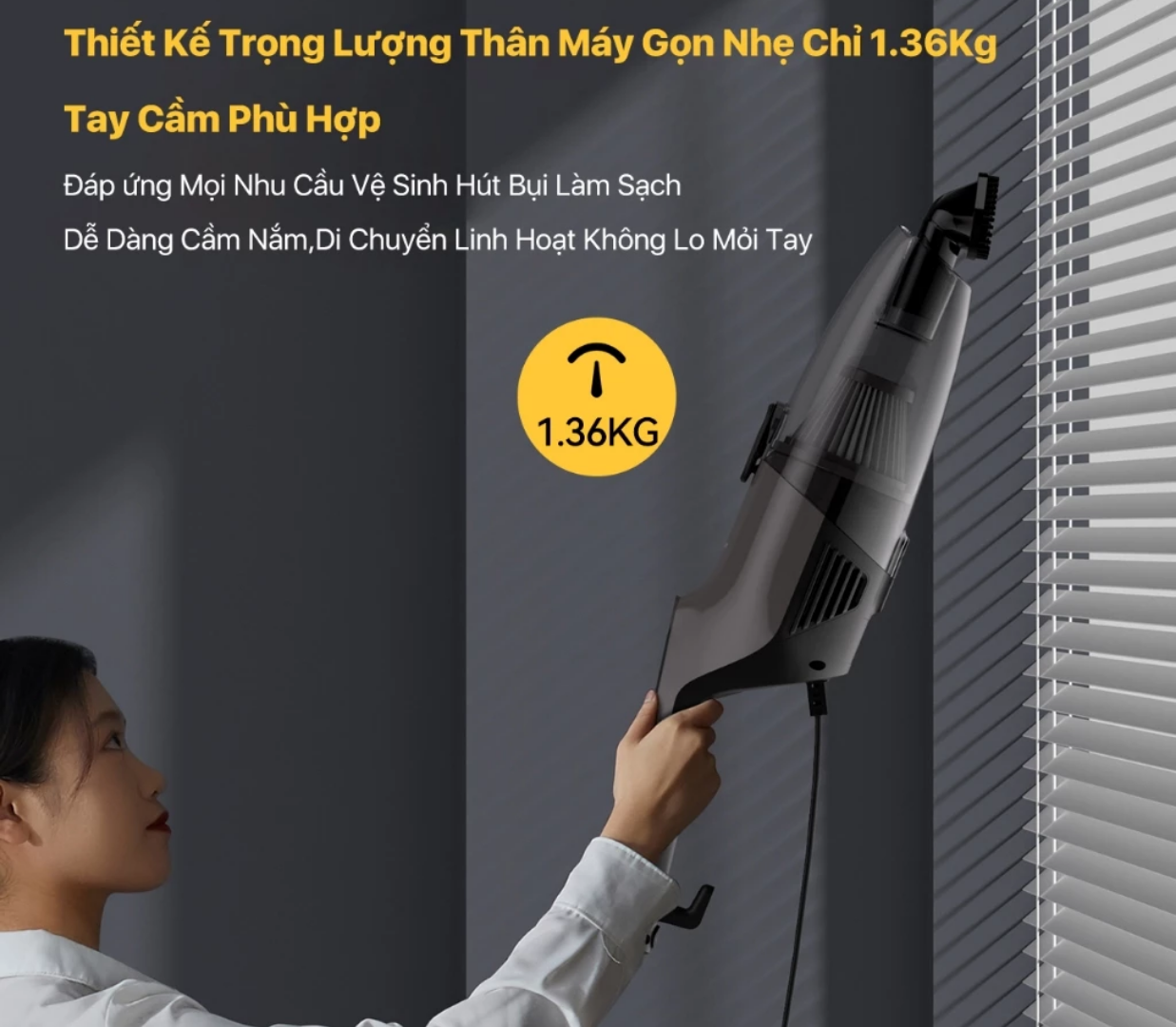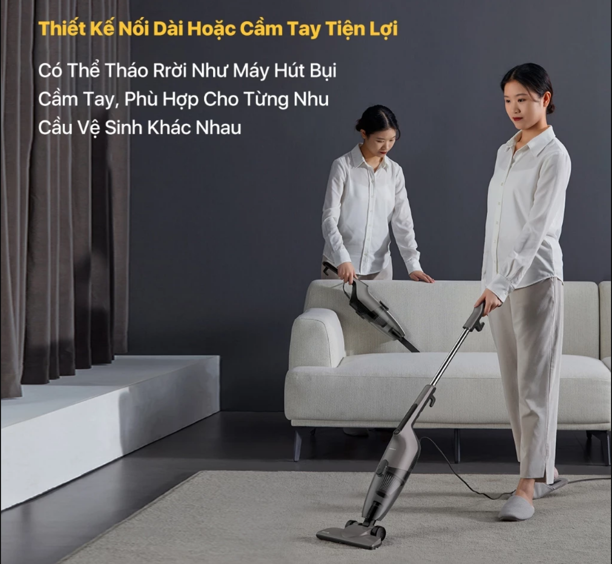 Thiết kế hiện đại, có thể tháo rời ống nối để sử dụng như máy hút bụi cầm tay nhỏ gọn.