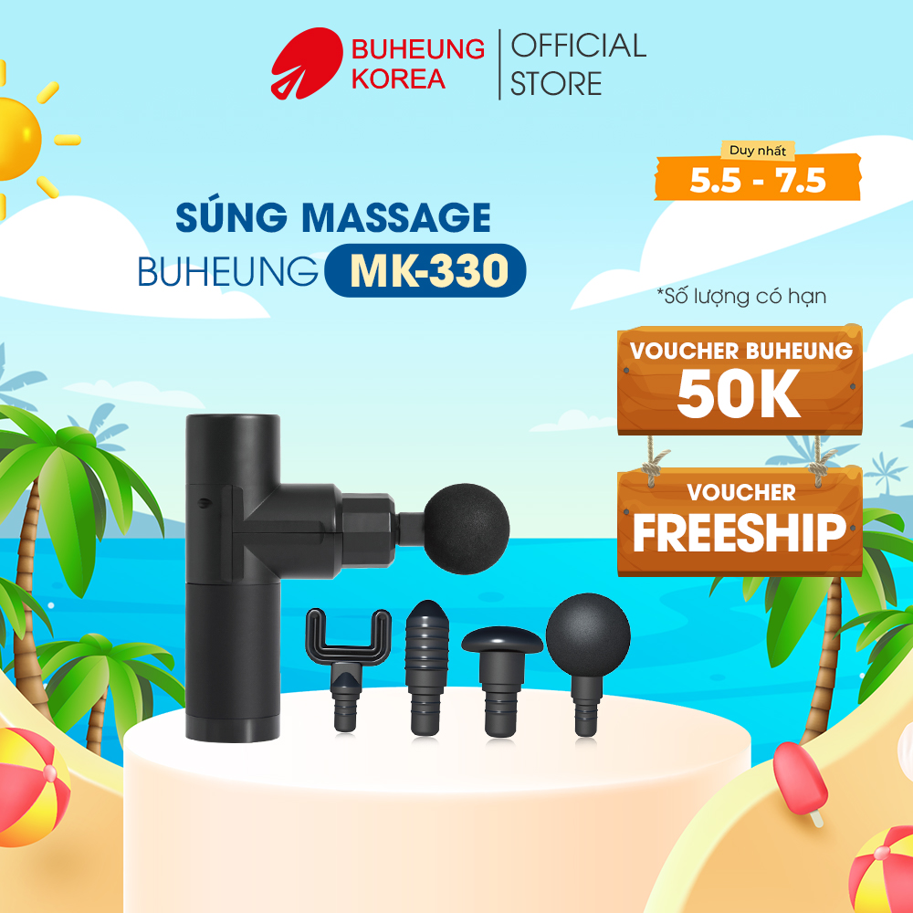 Thông số kỹ thuật Súng massage đa chức năng Buheung MK-330, 4 đầu massage, 4 chế độ rung, bảo hành chính hãng 12 tháng