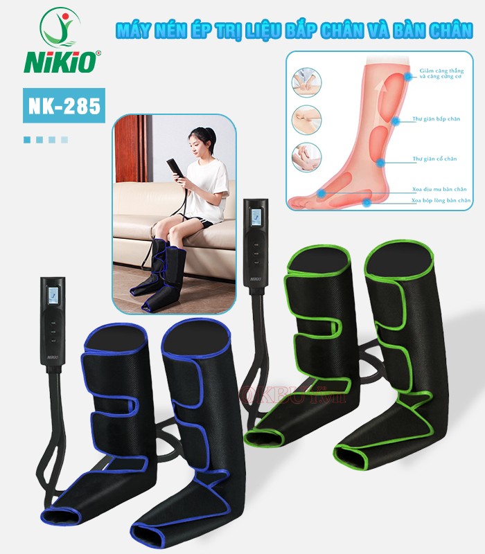 Máy nén ép bắp chân và bàn chân Nikio NK-285 giải pháp cho đôi chân khỏe. Hỗ trợ cải thiện đau nhức mỏi, bệnh chân không yên, tê nhức chân, đặc biệt phù hợp đối với những người bệnh suy giãn tĩnh mạch