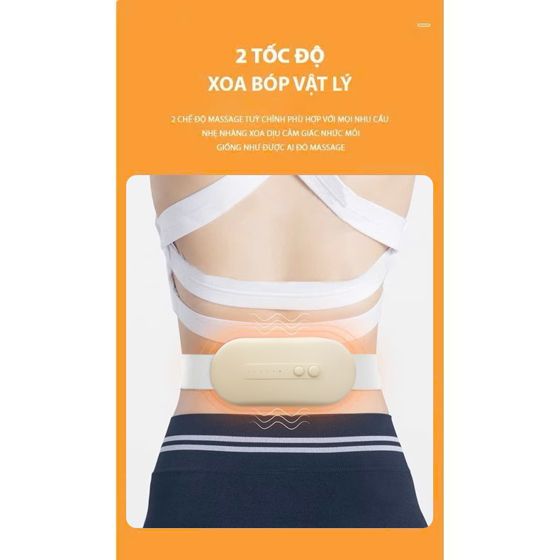 - Máy massage với đầu massage nổi, kết hợp massage đa điểm, xoa bóp vật lý 2 tốc độ, áp sát cơ thể, massage giảm đau bụng kinh, giảm đau vùng eo, thắt lưng.
