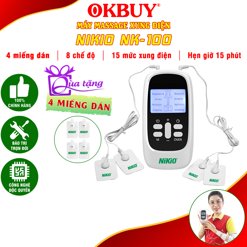Nếu bạn thường xuyên bị đau mỏi cơ bắp, đau lưng, mỏi cổ, hãy mua ngay cho mình một chiếc máy massage xung điện 4 miếng dán Nikio NK-100. Thiết bị này sử dụng dòng xung điện có tần số thấp, mát xa trực tiếp vào các vùng cơ giúp thư giãn, giảm căng thẳng mệt mỏi, hỗ trợ giảm đau nhức nhanh chóng. Máy được tích hợp nhiều chế độ như: xoa bóp, đấm lưng, châm cứu, bấm huyệt, giác hơi, đem đến cho bạn những giây phút thư giãn tuyệt vời ngay tại nhà. Chỉ 15 phút sử dụng, sức khỏe của bạn sẽ được cải thiện rõ rệt.