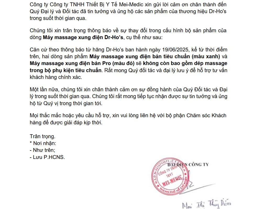 Thông số kỹ thuật Máy massage xung điện trị liệu Dr Ho New 40 phút