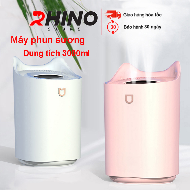 Máy phun sương tạo ẩm hẹn giờ Rhino H802 3000ml, tích hợp đèn ngủ nhiều màu, tiện lợi, dung tích lớn cho không gian rộng