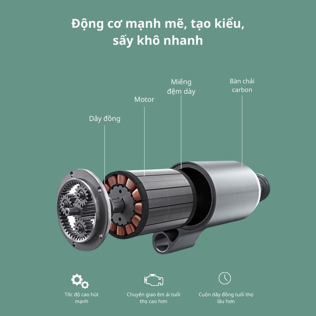 - Tiếng ồn thấp, động cơ tốc độ cao Máy sử dụng động cơ mô-men xoắn cao êm ái. Thiết kế cơ học giúp giảm tiếng ồn và