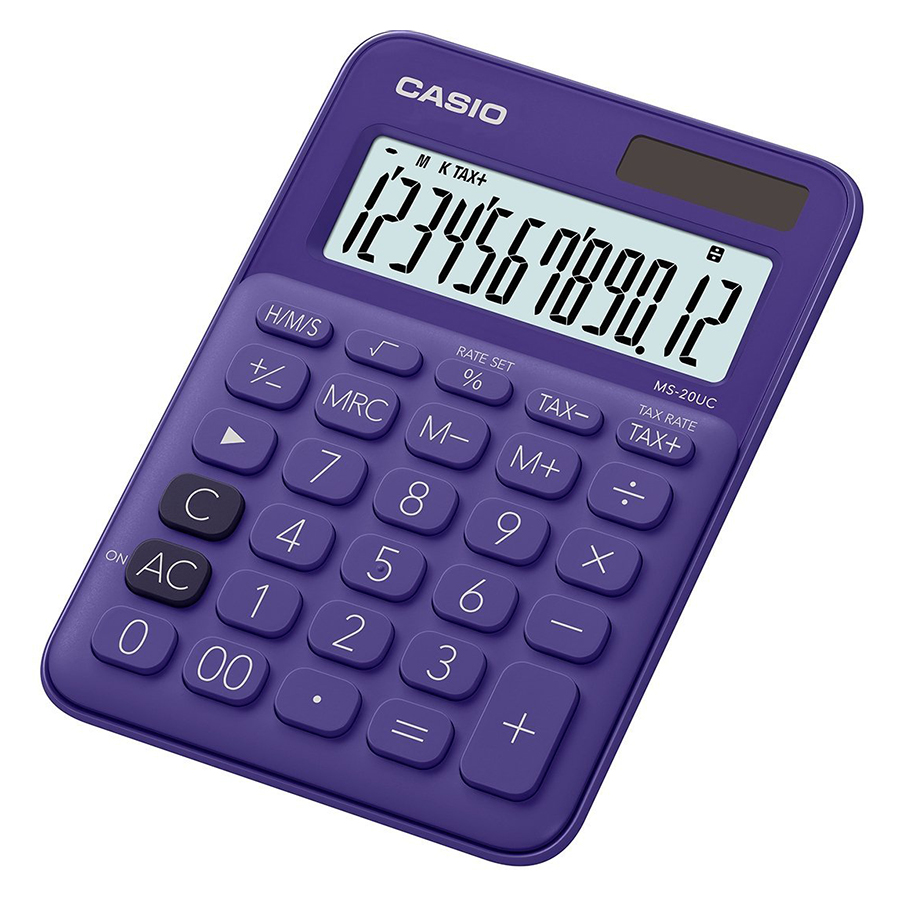- Máy Tính Để Bàn Casio Sắc Màu MS-20UC là sản phẩm tiện ích, không thể thiếu trong việc tính toán hàng ngày. Máy tính có màn hình to rõ, hiển thị tới 12 số, các chữ số đã được bản đại hóa phân tách 4 chữ số thuận tiện. Máy tính có nhiều chức năng tính toán cơ bản cùng các chức năng tiện lợi như: tính tỷ lệ phần trăm, tính thuế và đổi tỷ giá.