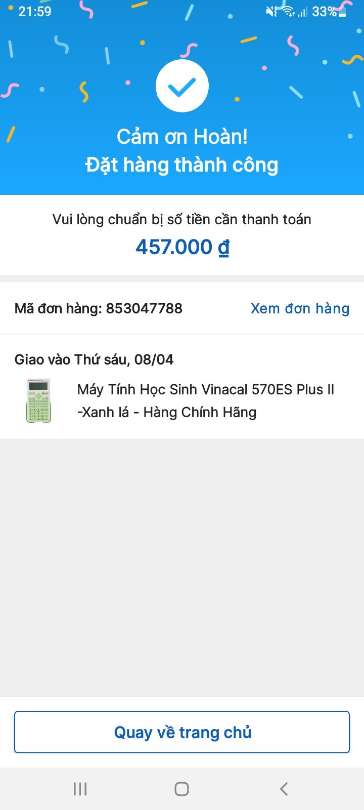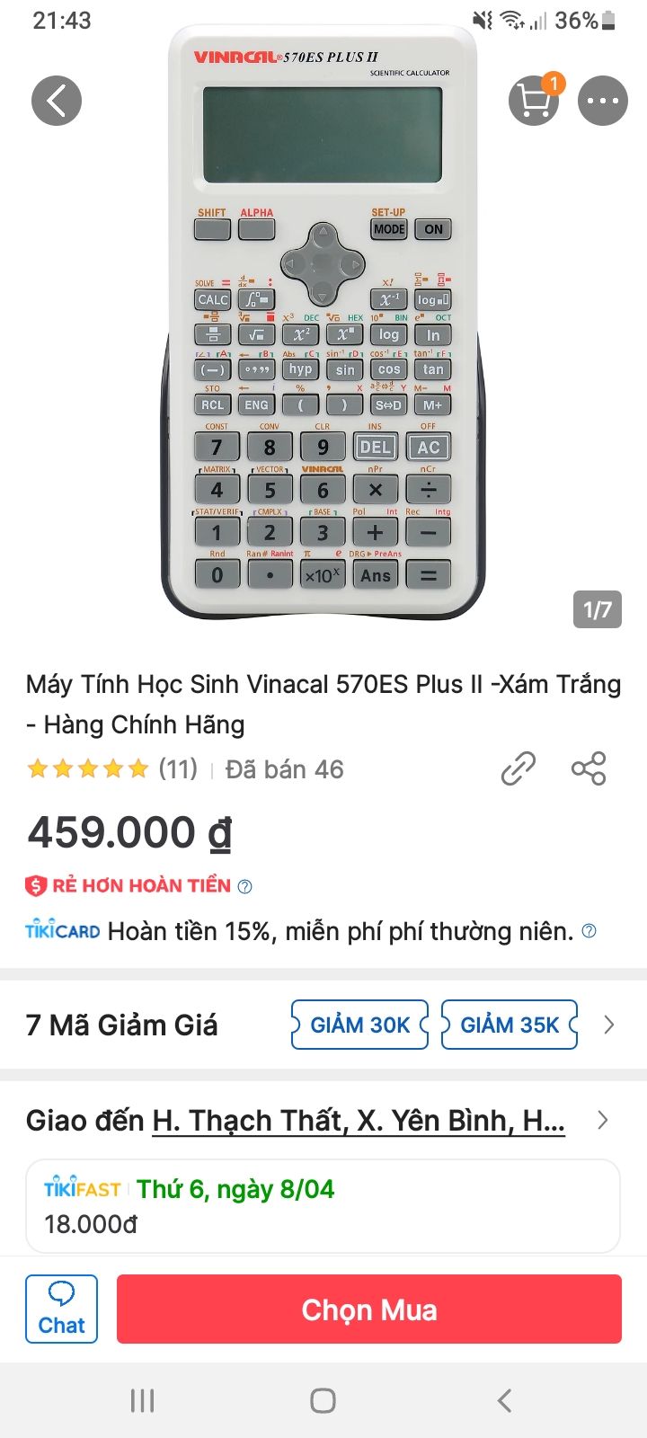 Vinacal thì rõ rồi, Nhẹ, tốc độ trên hẳn 580VNX, tuy nhiên phải bảo quản bao gồm chống ẩm và nhất là hạn chế rơi va đập vì độ bền không được như Casio :D, tuy độ bền kém hơn nhưng tốc độ vượt trội và phím bấm không bị delay phản hồi nhanh, không mờ chữ thì mình nghĩ là nên mua :D dùng giữ gìn chút là được, Fahasa tự giao hàng chứ không phải tiki nên nhanh hơn đến 5 ngày, amazing goodjob