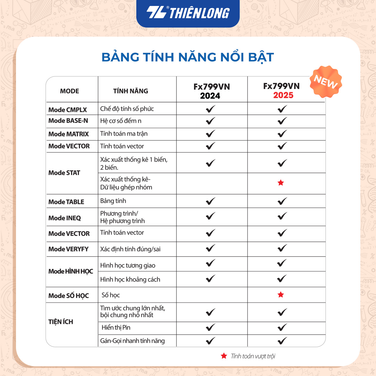 Thông số kỹ thuật Máy tính khoa học Thiên Long Flexio Fx799VN - Máy tính đạt chuẩn mang vào phòng thi