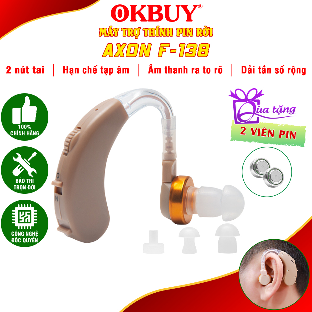 Máy trợ thính đeo vành tai Axon F-138 thích hợp cho người lãng tai nặng, âm thanh to rõ dễ nghe, người già và trẻ em đều dùng được