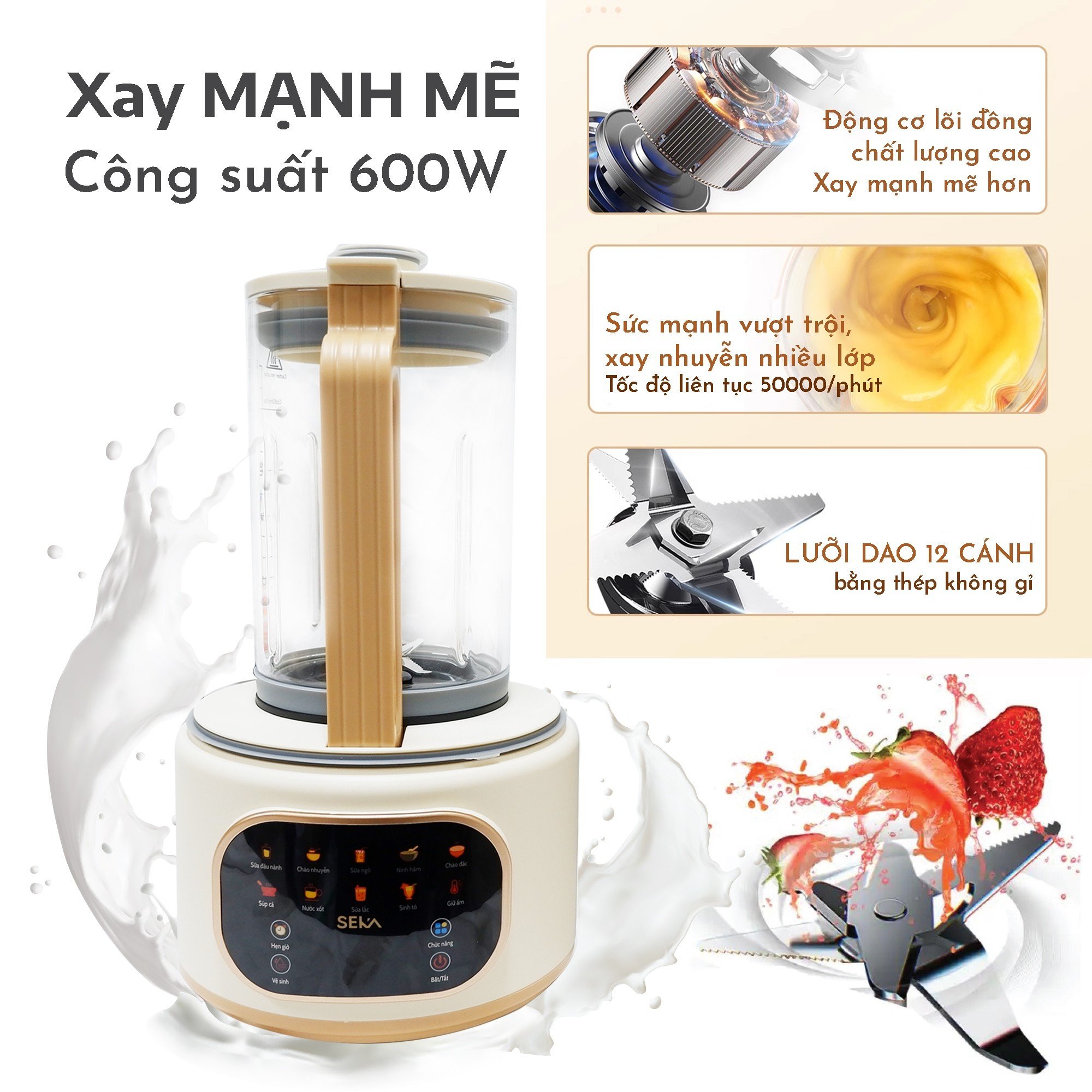 Thông số kỹ thuật Máy Xay Nấu Sữa Hạt Đa Năng Dung Tích Lớn Chống Ồn, Cách Âm Tốt hàng nhập khẩu