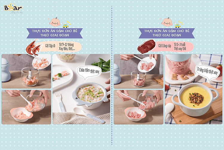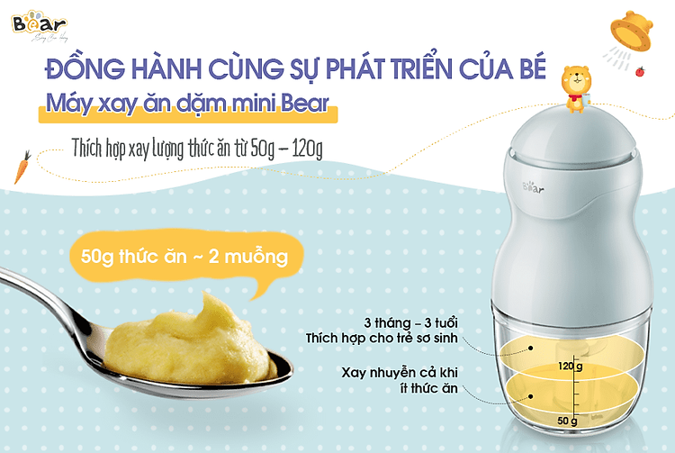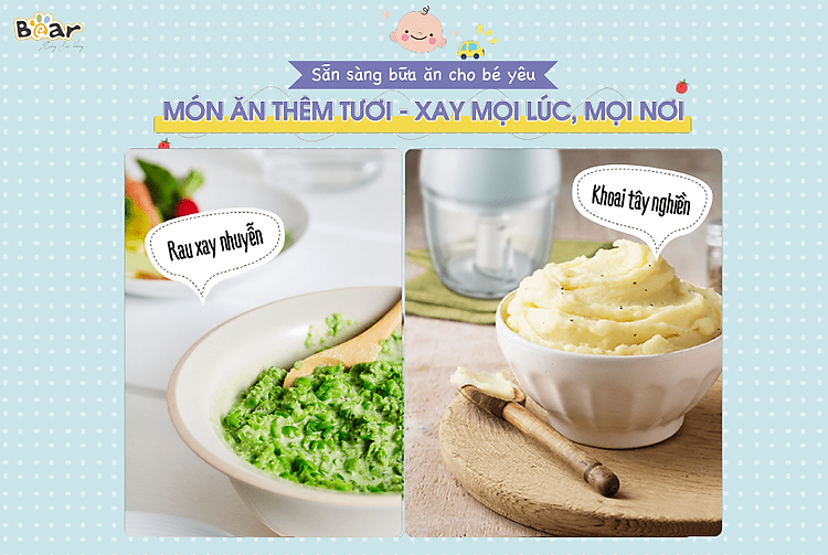 Ở những giai đoạn đầu của bé, việc ăn dặm rất quan trọng. Một ngày bé cần ăn nhiều cữ khác nhau và mỗi lần ăn khá ít nên việc sử dụng những máy xay cỡ lớn như hay khá lãng phí và không tiện lợi.