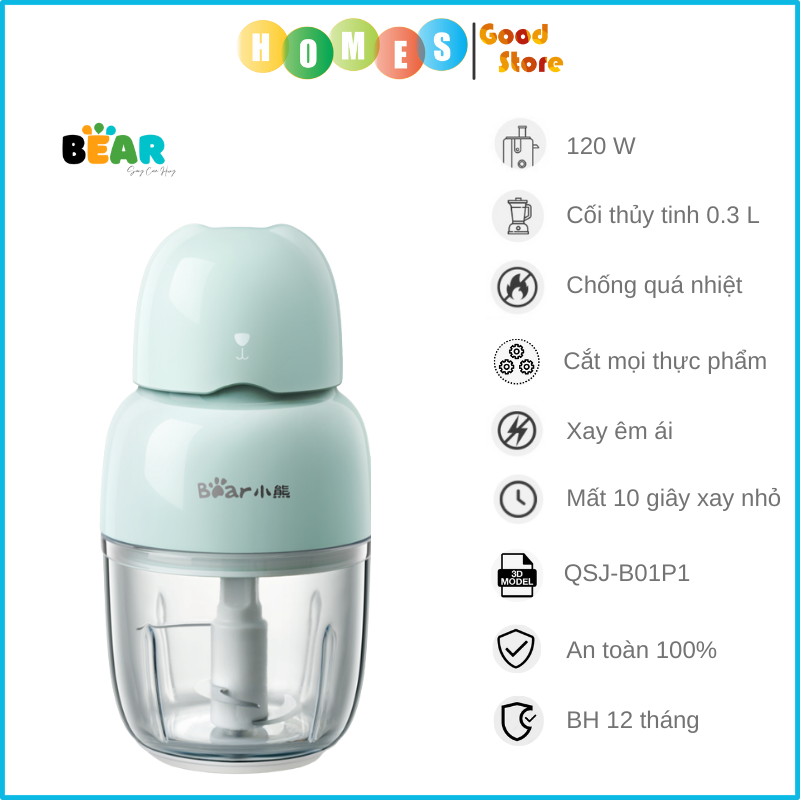 Máy xay ăn dặm Bear GR-B03V2 (QSJ-A01F2) có dung tích 300ml được thiết kế đặc biệt dùng để xay đồ ăn dặm cho bé như thịt, tôm, rau, củ, cháo, bột, hoa quả,