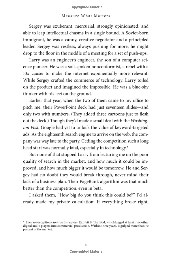 INSTANT NEW YORK TIMES BESTSELLER 'I'd recommend John's book for anyone interested in becoming a better manager', Bill Gates 'Management What Matters is a must read for anyone motivated to improve their organization' - Former Vice President Al Gore, chairman of the Climate Reality Project 'Measure What Matters shows how any organization or team can aim high, move fast, and excel' , Sheryl Sandberg, Facebook COO and founder of L and OptionB 'Measure What Matters deserves to be fully embraced by every person responsible for performance in any walk of life' - Jim Collins, author of Good to Great 'In this indispensable book, the most important venture capitalist of our era reveals a key to business innovation and success - Walter Isaacson, author of Steve Jobs and The Innovators 'Measure What Matters takes you behind the scenes for the creation of Intel's powerful OKR system - one of Andy Grove's finest legacies' - Gordon Moore, cofounder and former chairman of Inte -------- The revolutionary movement behind the explosive growth of Intel, Google, Amazon and Uber. With a foreword by Larry Page, and contributions from Bono and Bill Gates. Measure What Matters is about using Objectives and Key Results (OKRs), a revolutionary approach to goal-setting, to make tough choices in business. In 1999, legendary venture capitalist John Doerr invested nearly $12 million in a startup that had amazing technology, entrepreneurial energy and sky-high ambitions, but no real business plan. Doerr introduced the founders to OKRs and with them at the foundation of their management, the startup grew from forty employees to more than 70,000 with a market cap exceeding $600 billion. The startup was Google. Since then Doerr has introduced OKRs to more than fifty companies, helping tech giants and charities exceed all expectations. In the OKR model objectives define what we seek to achieve and key results are how those top priority goals will be attained. OKRs focus effort, foster coordination and enhance workplace satisfaction. They surface an organization's most important work as everyone's goals from entry-level to CEO are transparent to the entire institution. In Measure What Matters, Doerr shares a broad range of first-person, behind-the-scenes case studies, with narrators including Bono and Bill Gates, to demonstrate the focus, agility, and explosive growth that OKRs have spurred at so many great organizations. This book will show you how to collect timely, relevant data to track progress - to measure what matters. It will help any organization or team aim high, move fast, and excel.Giá sản phẩm trên Tiki đã bao gồm thuế theo luật hiện hành. Bên cạnh đó, tuỳ vào loại sản phẩm, hình thức và địa chỉ giao hàng mà có thể phát sinh thêm chi phí khác như phí vận chuyển, phụ phí hàng cồng kềnh, thuế nhập khẩu (đối với đơn hàng giao từ nước ngoài có giá trị trên 1 triệu đồng).....