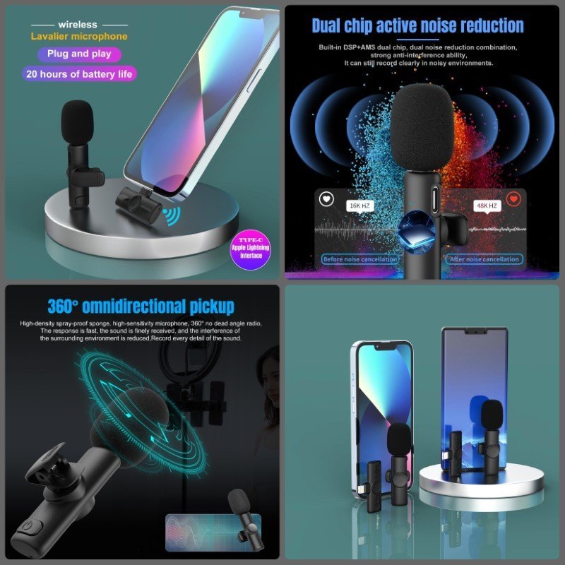 . Thu âm đa hướng 360 đô ,Chip micrô không dây 2.4G chuyên nghiệp với âm thanh chất lượng CD stereo 44,1 ~ 48kHz