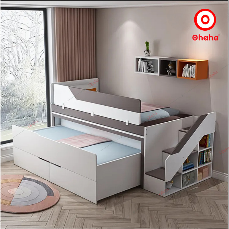 Giường tầng thông minh xếp gọn Ohaha có hộc tủ và bàn học - GTXG011 là mẫu giường được rất nhiều khách hàng yêu thích bởi thiết kế tích hợp nhiều tính năng thông minh.