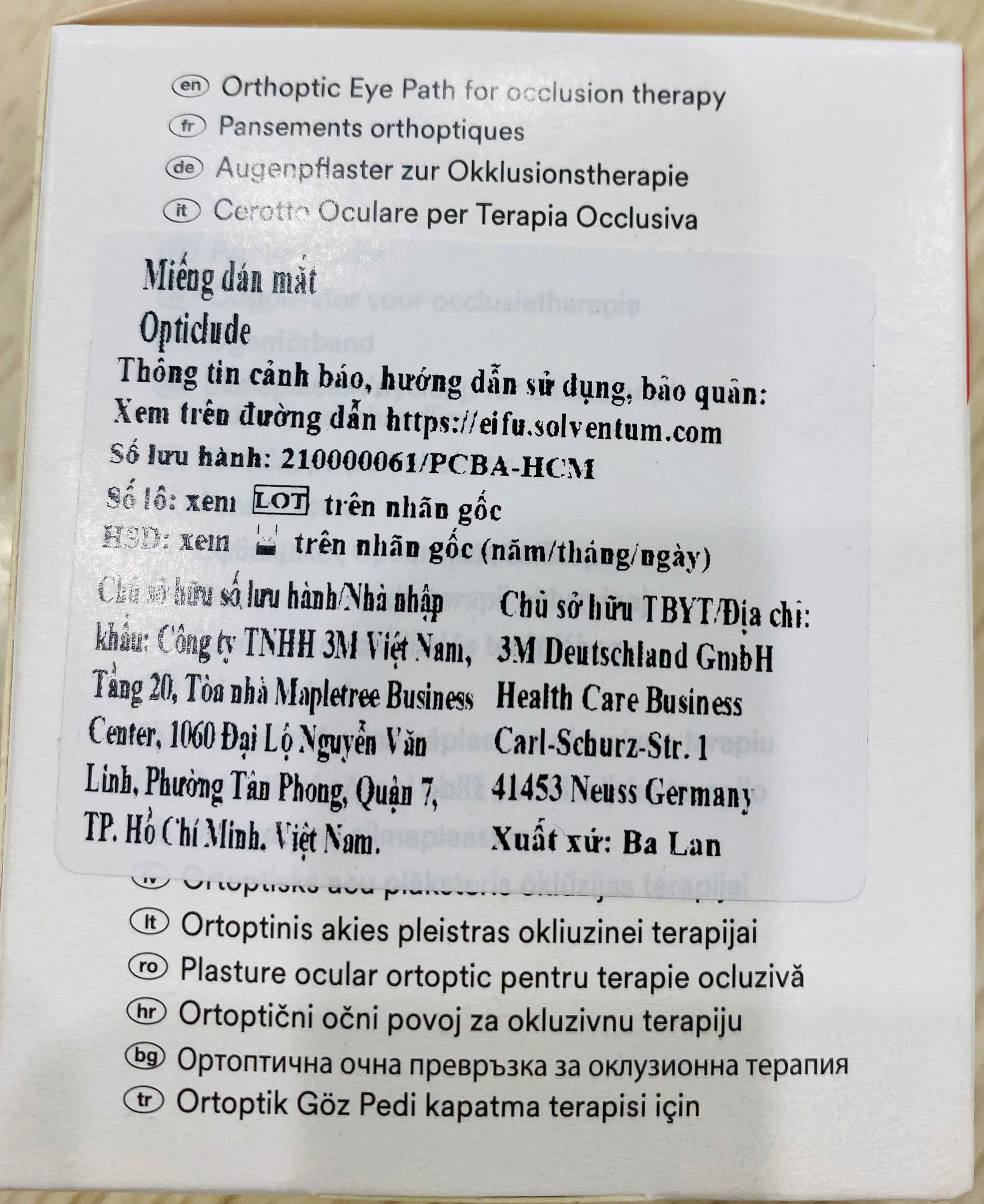 Miếng dán mắt trẻ em 3M Nexcare 1537 chữa cận thị/loạn thị/viễn thị cho trẻ dưới 6 tuổi, sản xuất tại Ba Lan