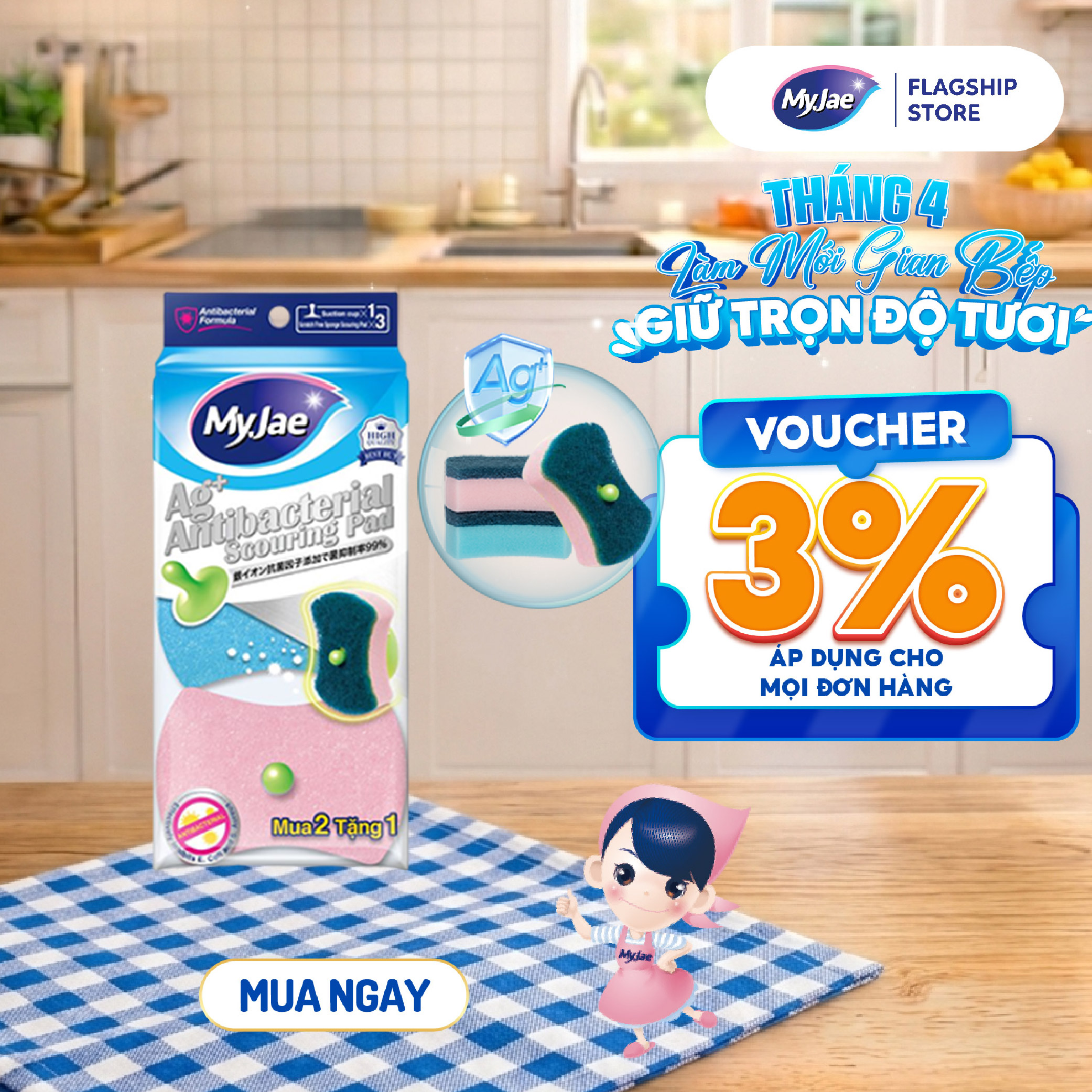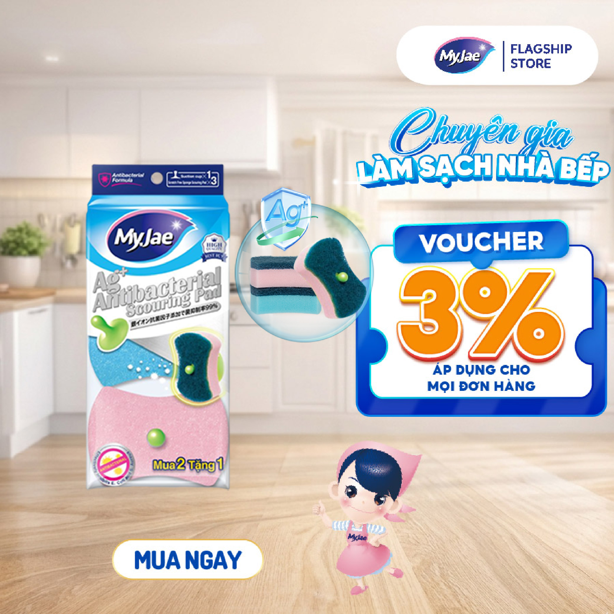 Thông số kỹ thuật Miếng Bọt Biển Rửa Chén Kháng Khuẩn MyJae An Toàn Bền Bỉ