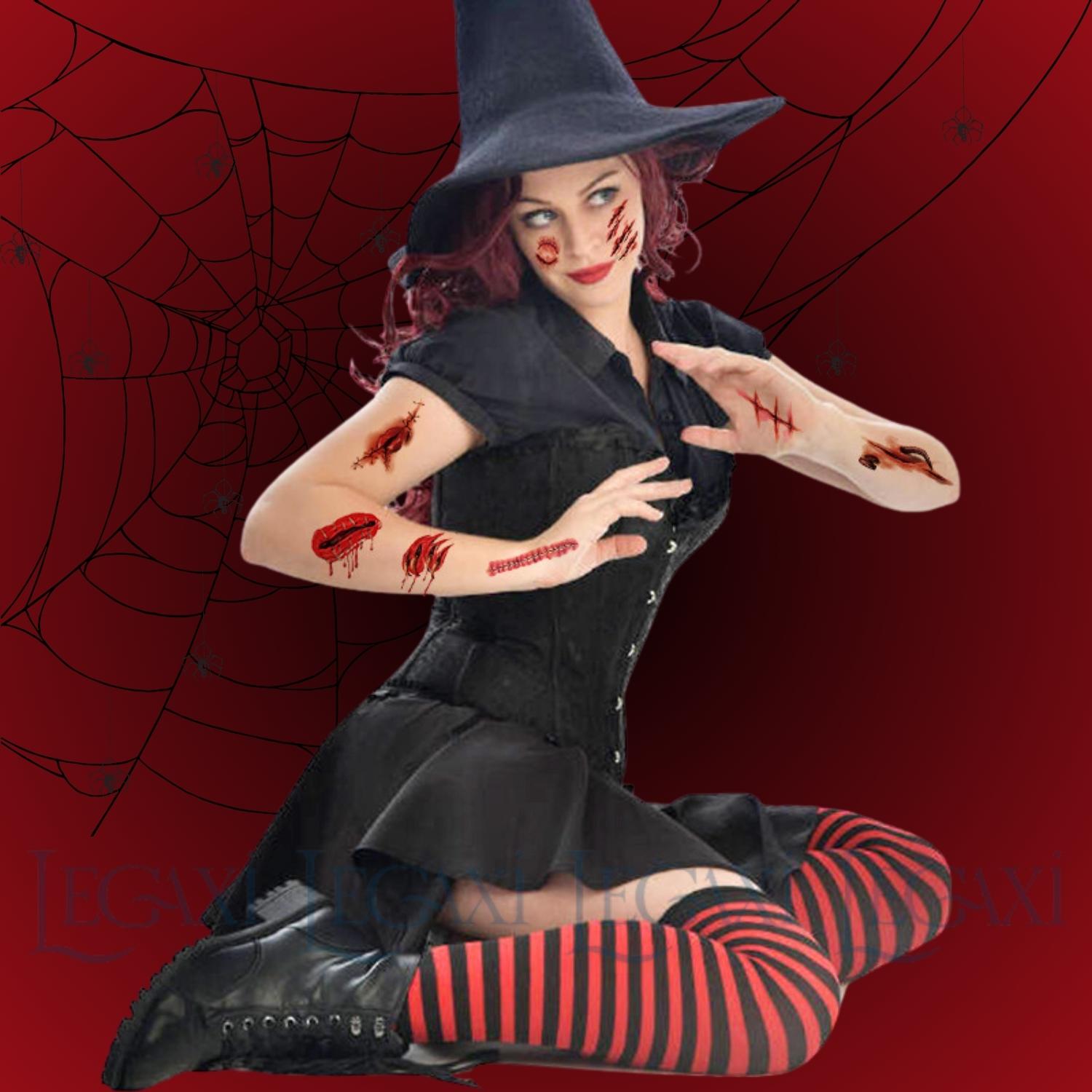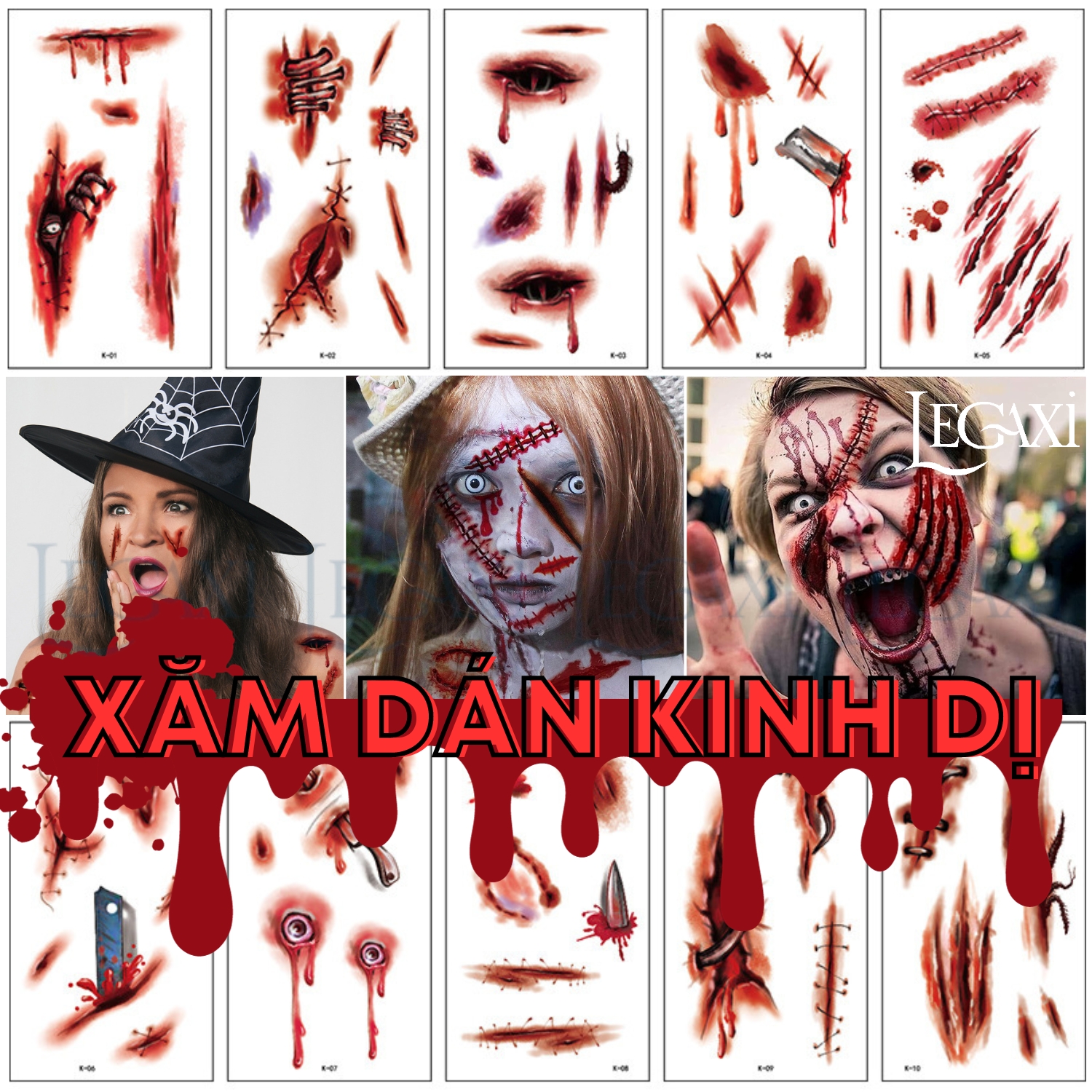 Thông số kỹ thuật Miếng dán hình xăm kinh dị hóa trang Halloween vết sẹo xước máu giả vết khâu chảy máu vết thương Legaxi