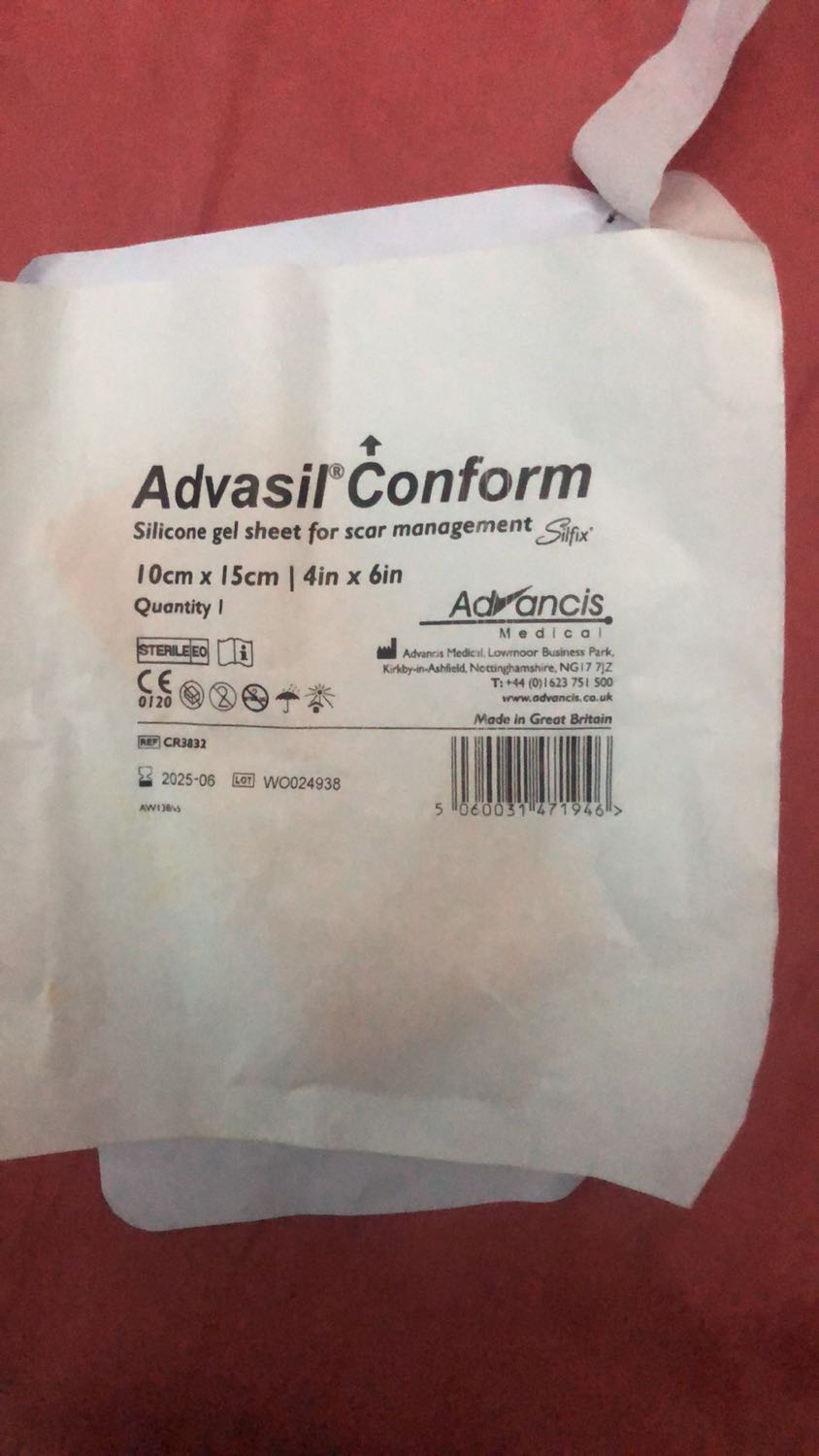 - Nếu vết sẹo lớn thì đặt nhiều miếng dán cạnh nhau. Có thể dùng băng dán y tế để giữ chặt miếng Advasil Conform vào vị trí vết sẹo.