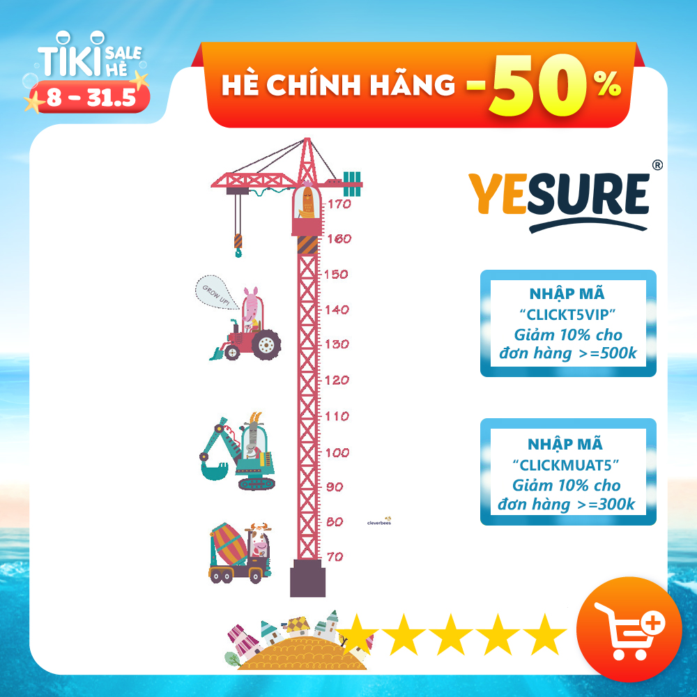 Thông số kỹ thuật Miếng dán sticker Cleverbees đo chiều cho bé cao từ 60 cm tới 180 cm dán tường trang trí hình hoạt hình ngộ nghĩnh dễ dán Mẫu Clickmua23- Nhiều mẫu lựa chọn